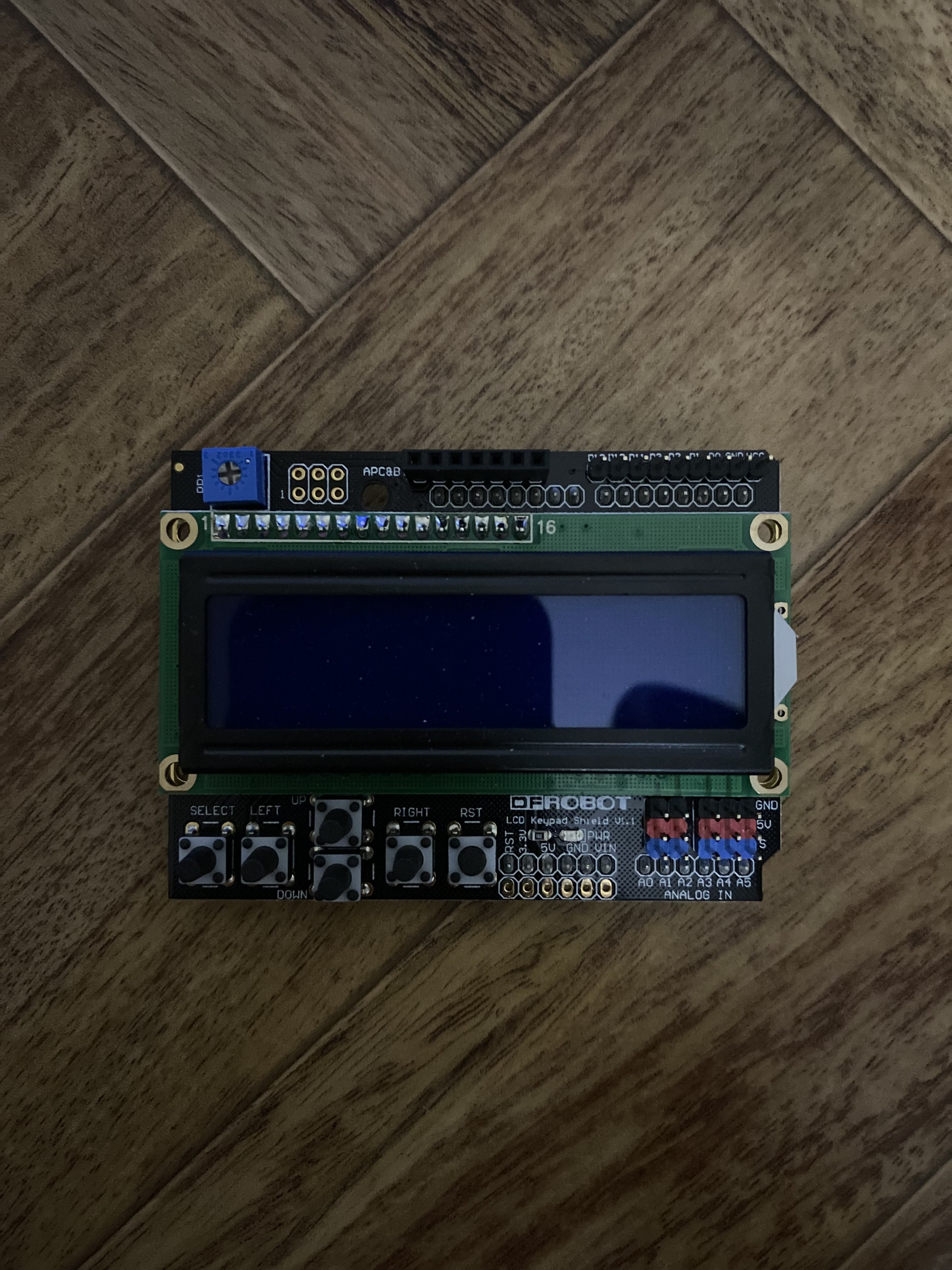 - DFROBOT Gravity: 1602 LCD Keypad Shield found on Amazon